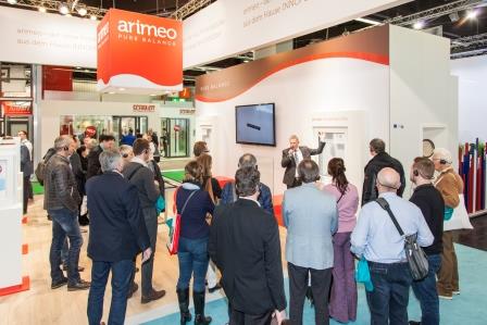 Insgesamt präsentierte sich INNOPERFORM® im Vergleich zu den Vorjahren auf einem weitaus größeren Messestand mit der neuen Produktmarke arimeo in einem markanten Markenauftritt.